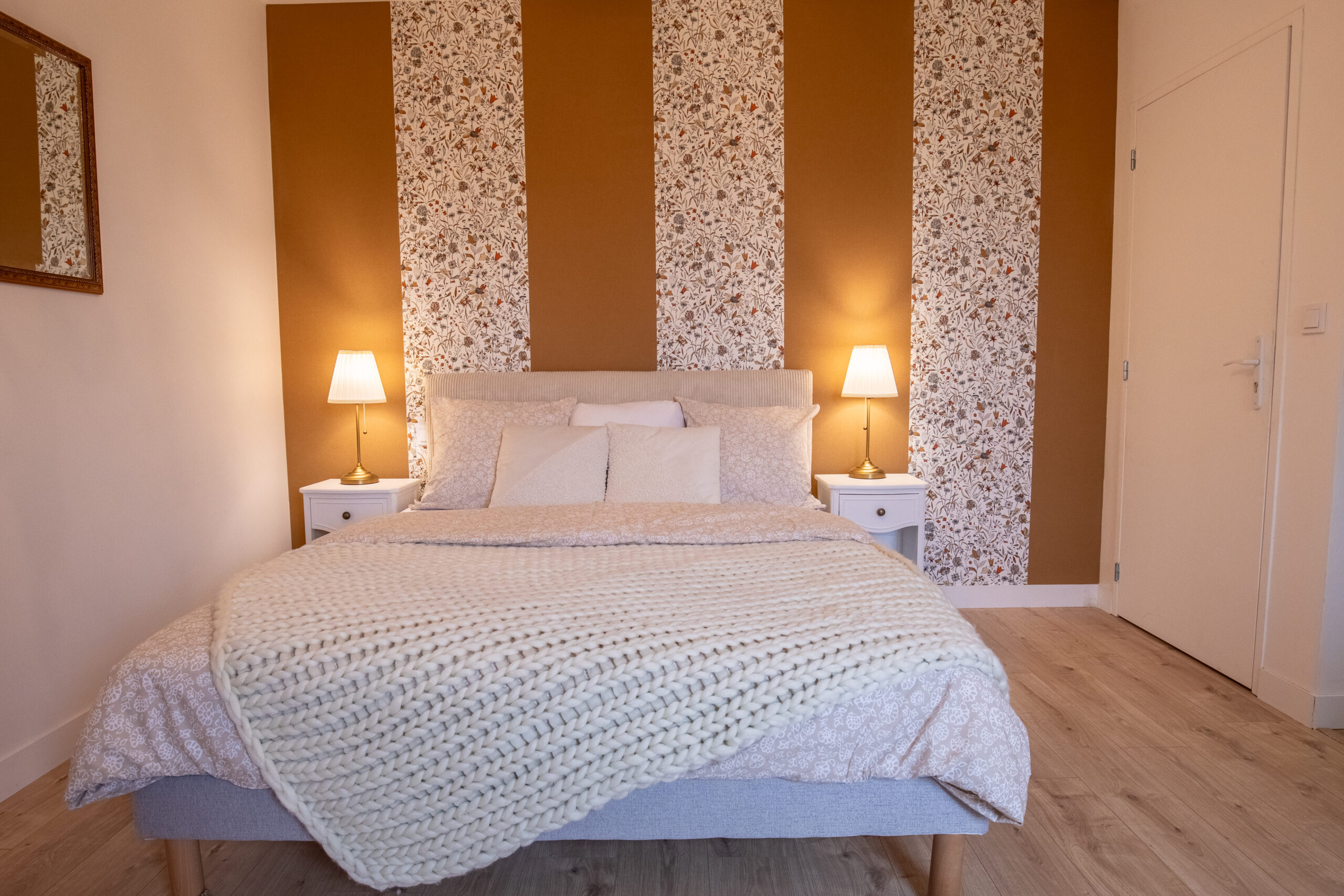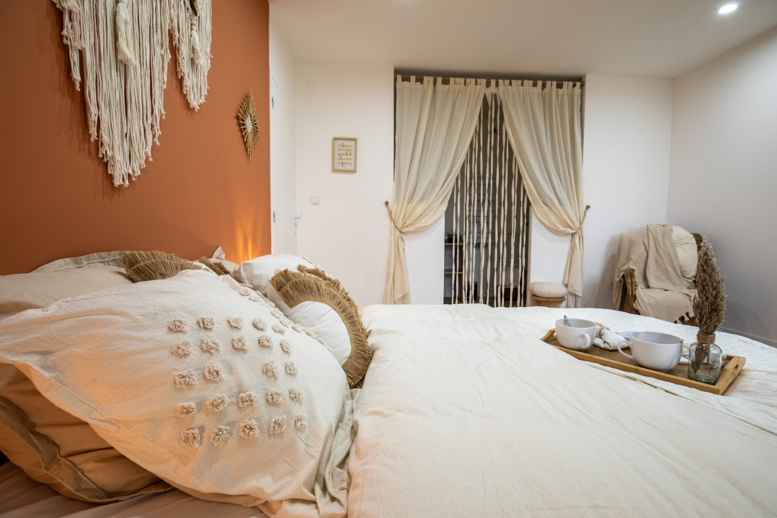 Entièrement rénovée dans un style bohème, cette chambre vous accueille dans une ambiance chaleureuse et décontractée.