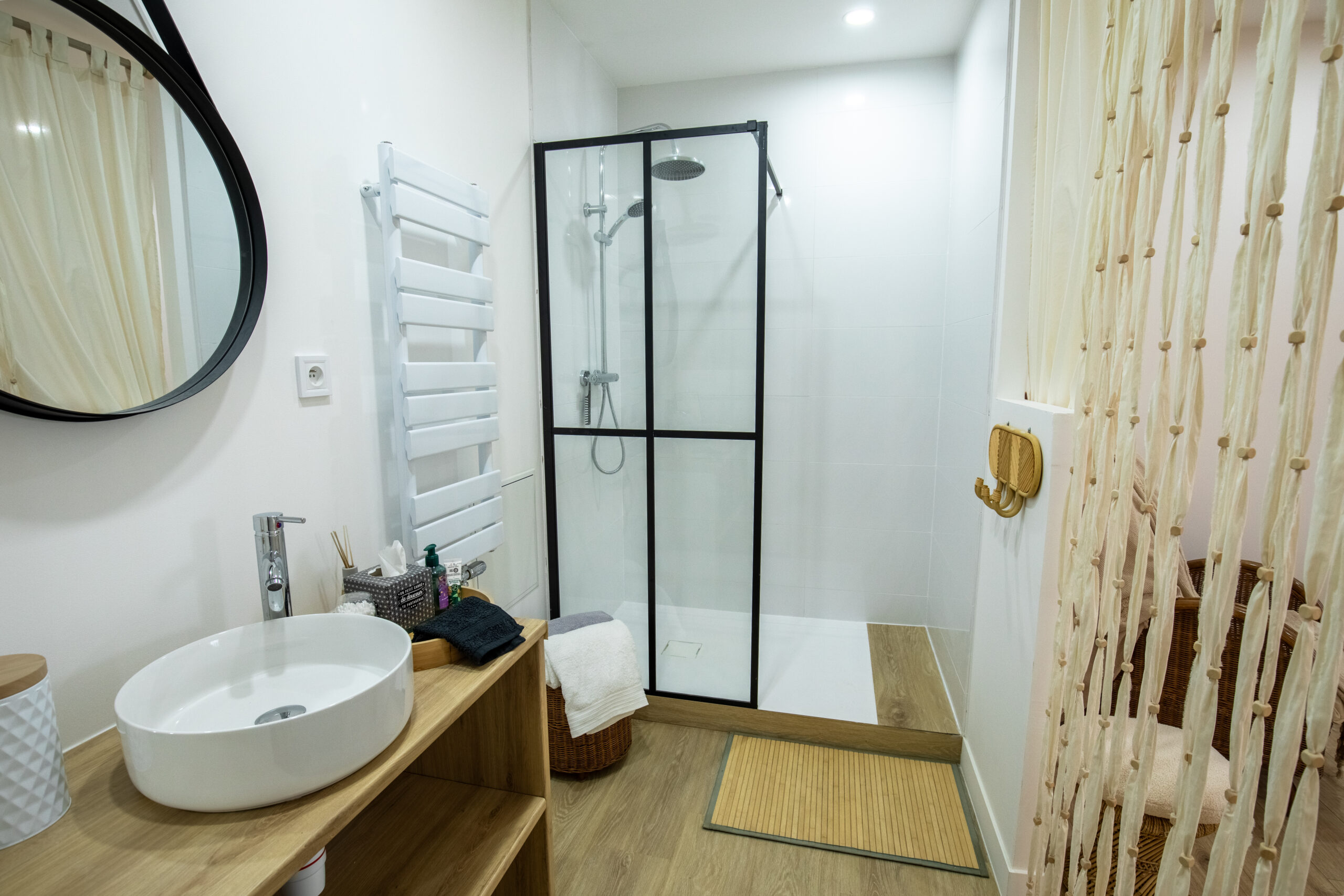 La chambre dispose également d’une salle d’eau privative avec douche et WC pour un confort optimal.